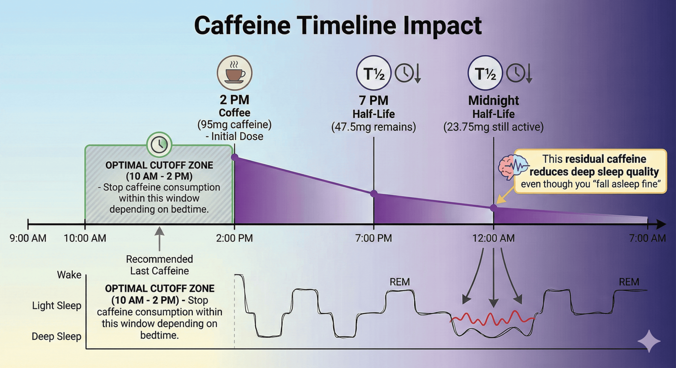 Explore: Module 3 — Deep Sleep Science →Your 2pm coffee is 25% active at midnight